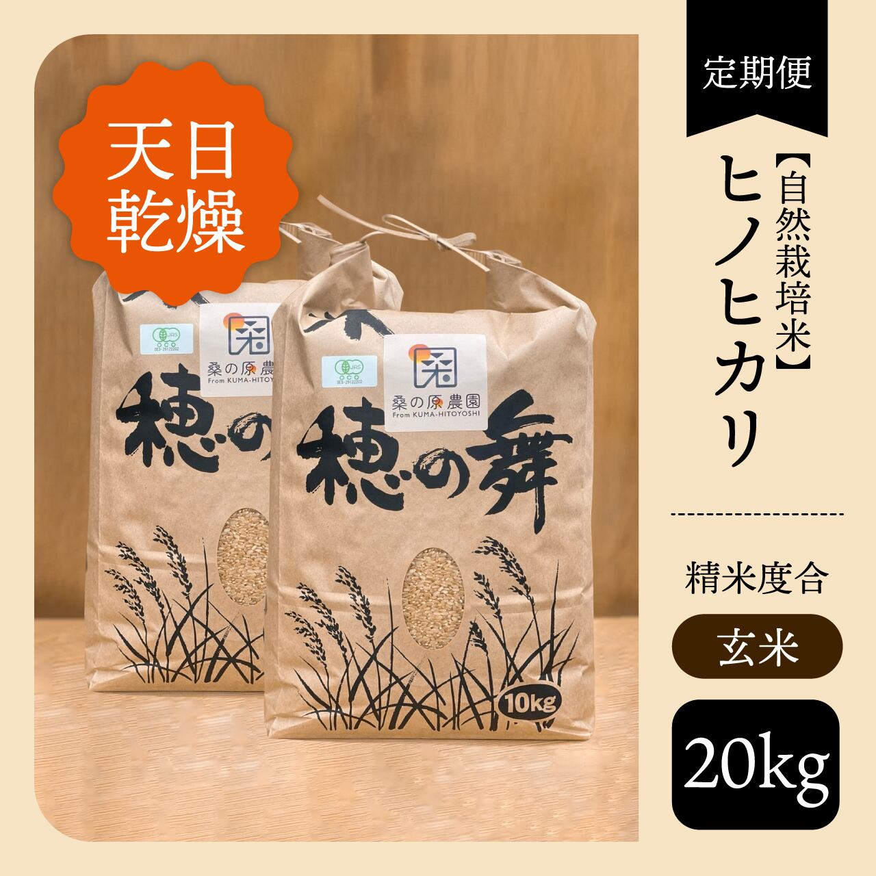 ★定期便★【自然栽培米】【天日乾燥】ヒノヒカリ【玄米】【20kg】【送料無料】